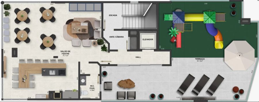 • Espaço infantil com playground.
