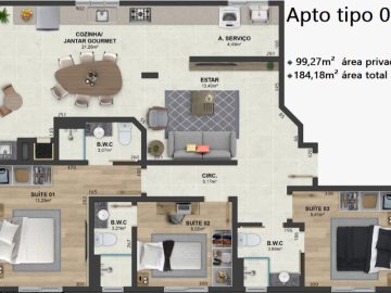 - Área Privativa: 99m²